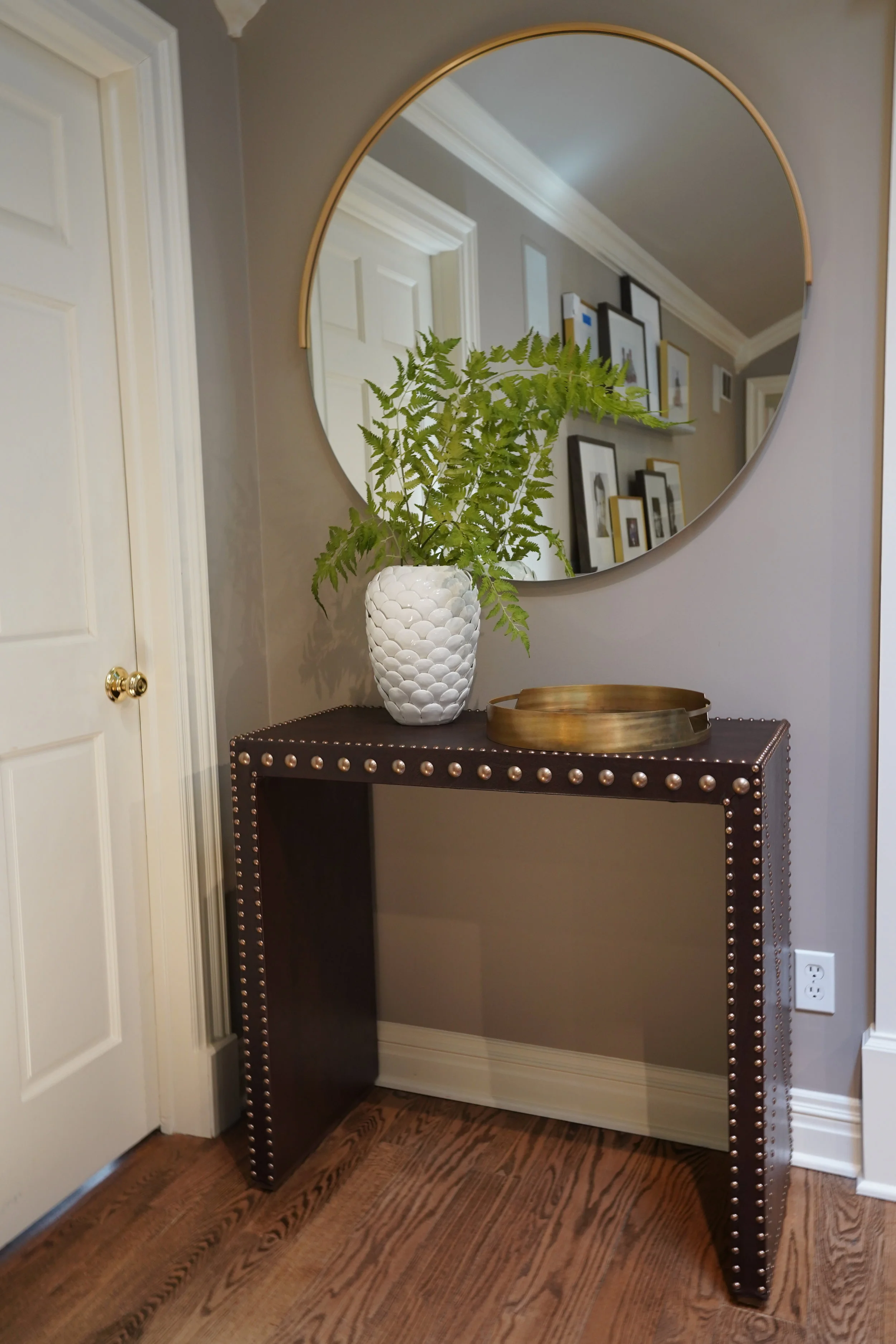 A new color scheme was introduced to further modernize and make it live up to today’s comfort living. Soft tones of grays, blues and neutrals live together with warm wood tones, and brass is used as an accent on accessories and lighting. Picture ledges updated the family picture wall, and can easily be updated as more family memories get captured.